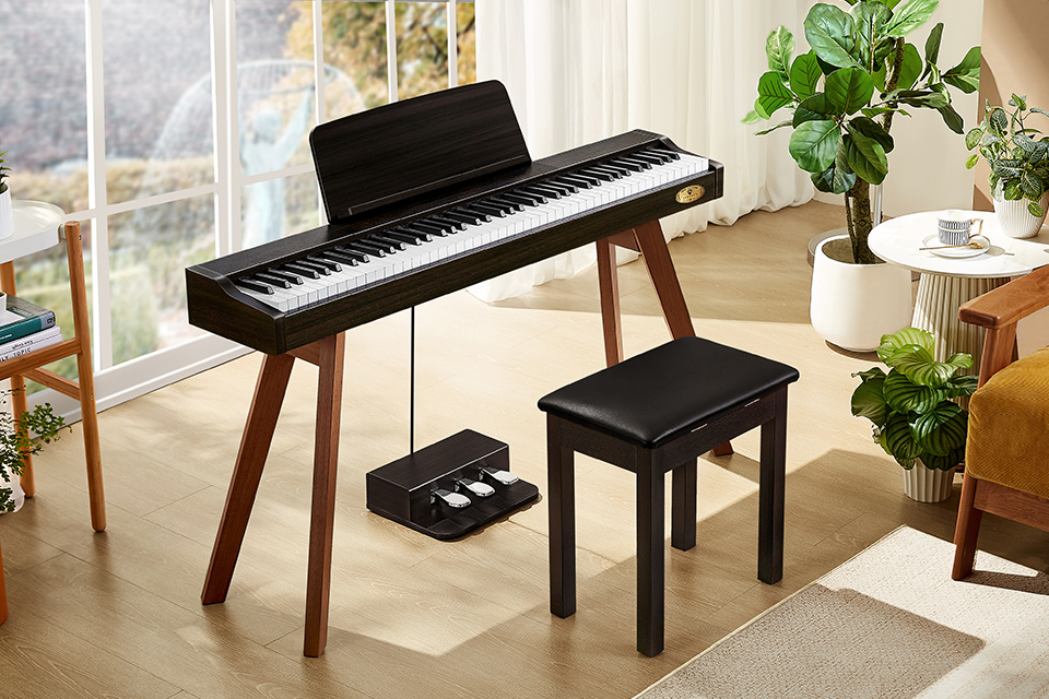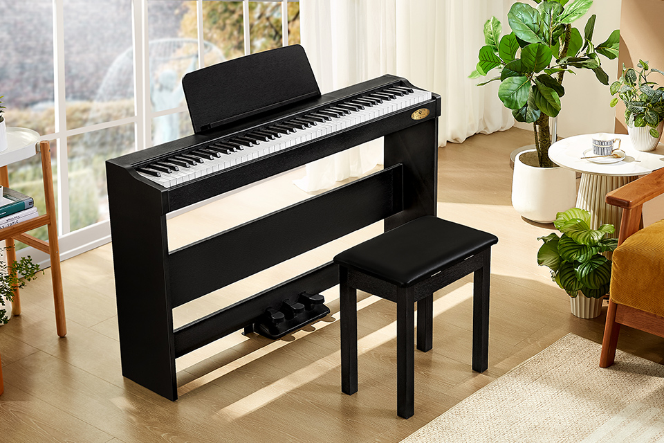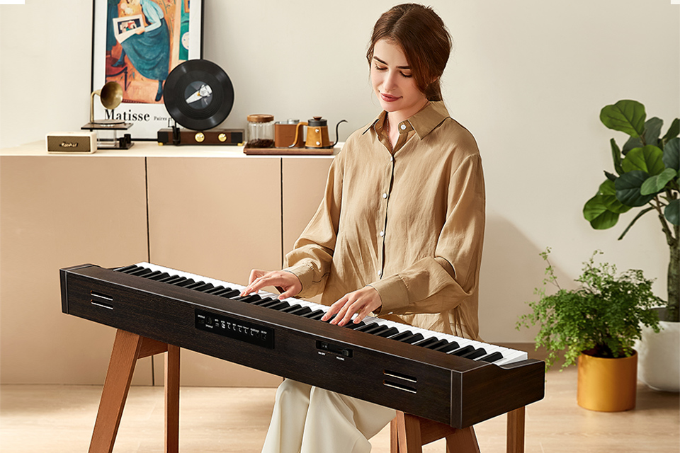 The full-sized standard keyboard simulates the depth of an acoustic piano's keys, offering a touch closer to a traditional piano. Whether striking hard or gently pressing, it responds accurately to delicate finger movements. Different playing strengths produce nuanced changes in tone and color, allowing dynamic control of music. The highly responsive keyboard ensures every adjustment in force is clearly felt, making your performance more expressive. |