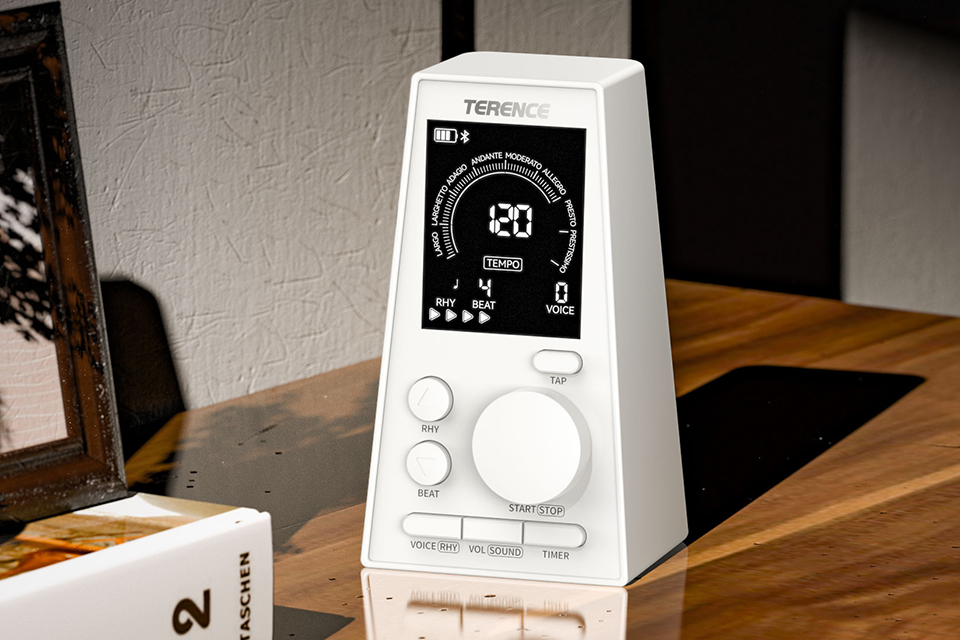 Its visual design eliminates the traditional pendulum counting, displaying speed, time signature, and other parameters in real time for easy adjustment and viewing. It also features a beat indicator light. |