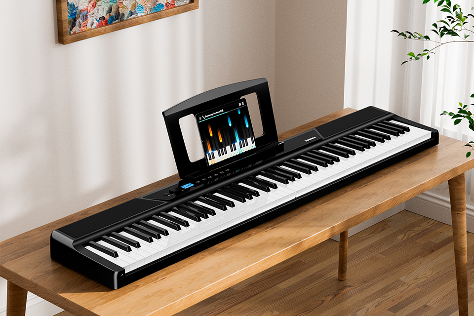 仿象牙质感的钢琴键盘,更接近传统钢琴的触感,模拟钢琴的下键深度、更高灵敏度的键盘反馈,弹奏时能表现出细致的强与弱,更接近真实钢琴演奏感;每一次力度调整,都能清晰感知旋律变化。 |