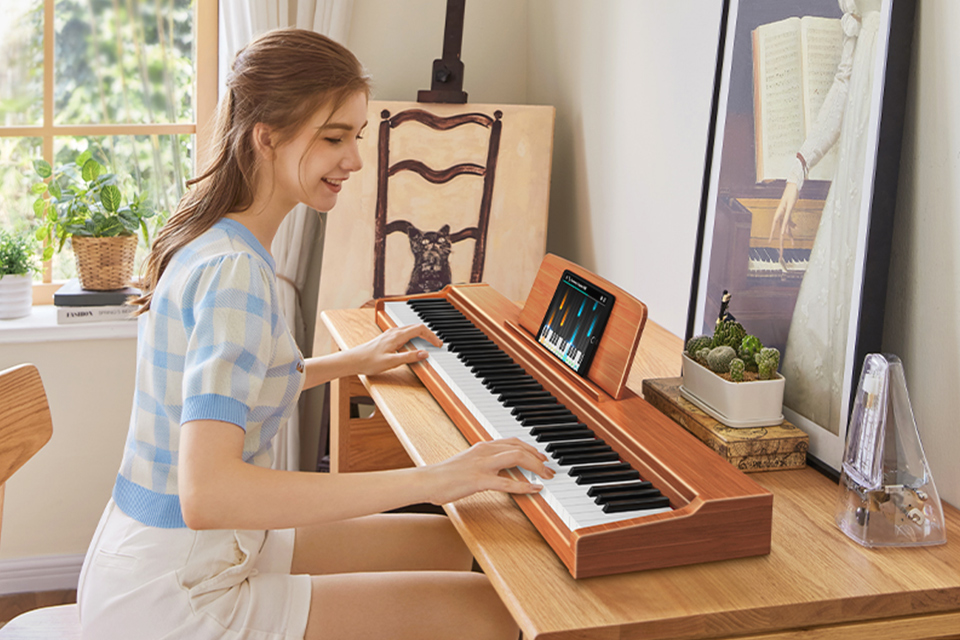 可以精准捕捉手指触键的细微变化,让演奏更接近真实钢琴手感体验,键盘还原钢琴琴键深度以及回弹速度,媲美真钢手感。 |