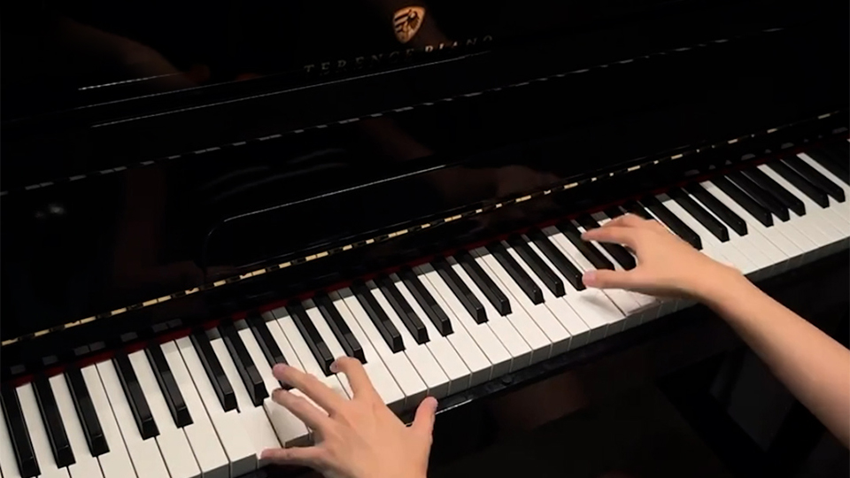 带上耳机静音练琴,沉浸在自己的音乐世界 |