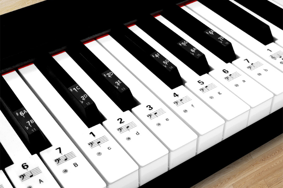 印有简谱和五线谱的键盘标识贴,能帮助初学者更快的熟悉琴键,有效提高练琴效率。 |